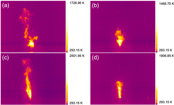 该研究通过电喷雾和机械混合制备了Al-MO/PVDF铝热剂(MO=ZnO、ZnFe₂O₄),具有更快的点火速度、更高的火焰温度和更强烈的燃烧,表现出二次放热(微爆)。电喷雾辅助制备提高了均匀性,并促进了快速、高温反应,从而增强了燃烧性能。研究使用巨哥科技的红外热像仪测量含氧化锌和铁酸锌添加剂的铝基含能混合物的样品燃烧时的最高温度:Instrumentation and associated companies used in the study:Infrared camera MAG91 Shanghai Magnity Technologies Co., Ltd. (China)