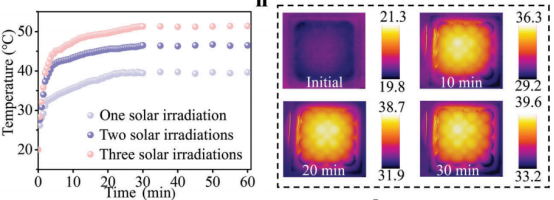 该研究使用专门设计的纤维素纳米纤维和酪蛋白酸钠协同产生稳定的湿泡沫,并形成不透气的气泡界面,泡沫表现出与脆性泡沫相当的高拉伸应力,并具有优异的延展性、循环弹性行为,并且是可水焊接的,使其能够定制成定制的几何结构。研究使用巨哥科技的红外热像仪记录样品的温度变化:The temperature evolution of the samples was recorded using an infrared thermal imager (MAG32, Magnity Technologies Co., Ltd., China).