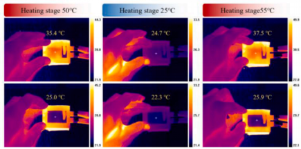 该研究开发了一种结合质子酸和锌离子(Zn2+)的共掺杂策略,以制备高性能的基于聚苯胺的电致变色器件。研究使用巨哥科技的红外热像仪测量不同加热温度下Zn-ECD材料的表面实际温度:Long-wave IR (LWIR) radiation imaging was performed with a MAG 32 system (Shanghai Magnity Technologies).