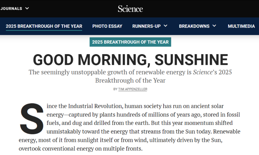 2025年,可再生能源已超煤炭成为全球电力首要来源,中国生产了全球80%的太阳能电池、70%的风力涡轮机和70%的锂电池。